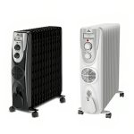 شوفاژ برقی ایوولی مدل EVOH-13MFW (به رنگ سفید) و مدل EVOH-13MFB (به رنگ مشکی) شوفاژ های برقی فن دار EVVOLI ایتالیا و ساخت چین می باشد.این محصول حداکثر دارای 2900 وات میباشد. این دستگاه فن دار بوده و دارای توربو فن 400 واتی میباشد که به صورت مجزا از دستگاه قابل خاموش و روشن کردن است. این دستگاه مناسب انواع فضاهای خانگی ،اداری و … می باشد.به وسیله گرماده های قدرتمند و کم مصرف این محصول میتوان به راحتی از پس گرمایش 25 الی 30 متر مربع بر آمد. همچنین دکمه های تنظیم میزان گرمایش و المنت های این محصول نیز قابل تنظیم دستی میباشد. این محصول دارای قابلیت تنظیم قدرت میباشد و میتوان قدرت دستگاه را با توجه به میزان گرمایی که نیاز داریم تنظیم کنیم ؛ مثلا اگر اتاق شما کوچک بوده و نیازی به استفاده از حداکثر قدرت دستگاه ندارید میتوانید قدرت دستگاه روی درجات کمتر تنظیم کرده و مصرف برق دستگاه را کم کنید که باعث افزایش عمر دستگاه شده و مصرف برق را بسیار کم میکند. همچنین این دستگاه دارای درجه ی تنظیم دما میباشد که میتوان با تنظیم آن دمای اتاق را به صورت دلخواه تنظیم نمود که این ویژگی دستگاه هم باعث کاهش مصرف برق میشود. سیستم گرمایش این رادیاتور به صورت روغنی میباشد که المنت های دستگاه باعث گرم شدن روغن مخصوص موجود در داخل دستگاه میشود و این گرما از طریق رادیاتور به محیط انتقال میابد. روغن داخل دستگاه مادام العمر و به صورت پلمپ میباشد و نیازی به تعویض آن ندارید و فقط دستگاه را به برق زده و استفاده میکنید.